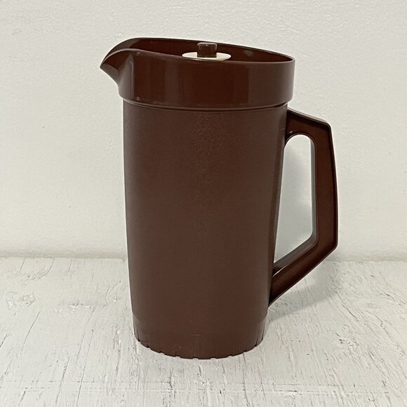 Vintage Brown Tupperware Pitcher With Pop Top Lid 800-11 Made In U.S.A