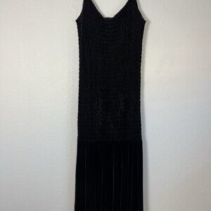 Vintage Brown Velvet Silk Art Deco Shirred Formal Dropped Waisted Gown Dress XL