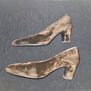 Vintage Brown Velvet flats with chunky heels by Nina Size 7.5M.