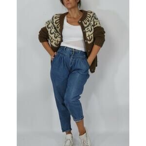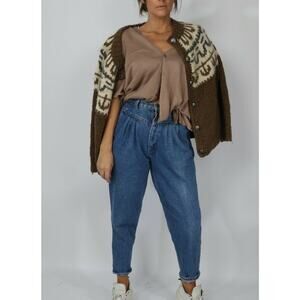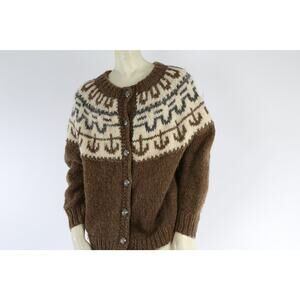 Vintage Unbranded Brown Knit Wool Fuzzy Sweater Cardigan Size M