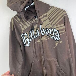 Vintage Brown Y2K Billabong Lined Zip Up Embroidered Logo Hoodie Size L