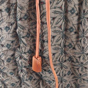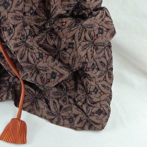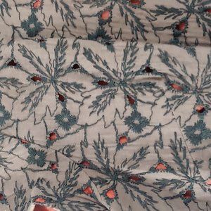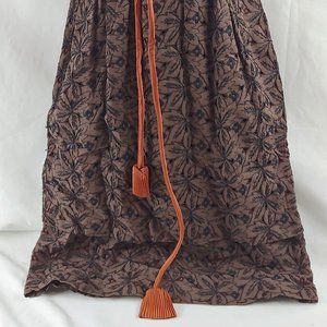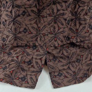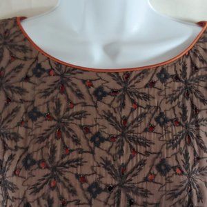 Beautiful Vintage Handmade Brown and Black Floral Eyelet Dress Short Sleeve with Rust colored Satin Belt. Tiered, Fully Lined with a rust colored satin. Small slit in back. Zip closure.