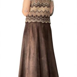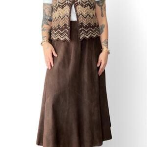 Vintage Brown leather boho maxi skirt - Pia Rucci