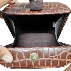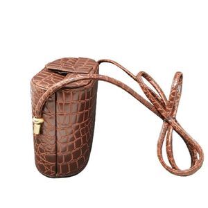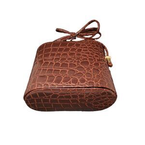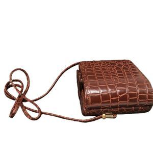 This vintage embossed croc box purse mini bag brings classic elegance to any outfit. With its structured box design in rich brown, this piece is both stylish and versatile, dating back to the 1980s-1990s. The bag features a long shoulder or crossbody strap (non-adjustable) for easy wear.