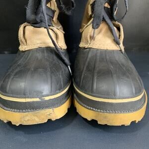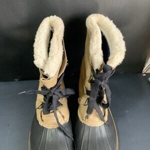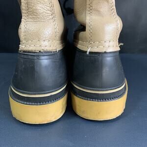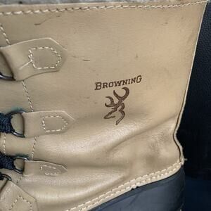 These vintage Browning leather duckboots are the perfect addition to any hunting or back country outfit. With a round toe shape and lace up closure, they provide both comfort and functionality. The brown and black color scheme is timeless and versatile, making them suitable for any occasion.