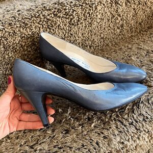 Vintage Bruno Magli Italy Slate Blue Pumps 38.5 / US 8 Leather Heels Blue Soles
