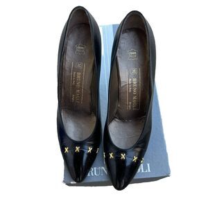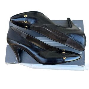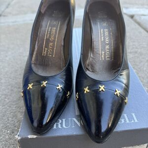 EUC BLACK X STUDDED BRUNO MAGLI LEATHER PUMPS SIZE 7.5 AAA