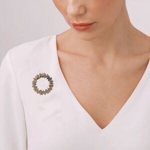 Vintage Brushed Gold Circle Wreath Antique Brooch Pin