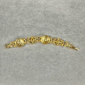 Vintage Brushed Gold Givenchy Bracelet With Red and Blue Glass Stones