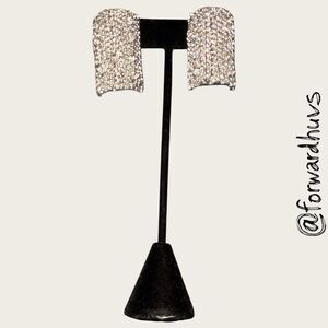 Embedded within the face of each earring are clear rhinestones, adding a touch of sparkle that contrasts beautifully with the industrial design. The result is a striking blend of raw form and refined shimmer—perfect for collectors of mid-century modern or avant-garde fashion.