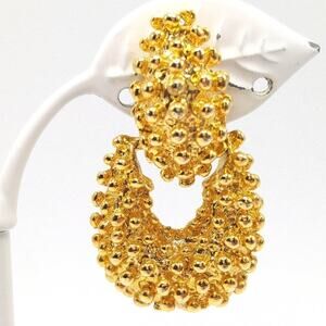 *Description: This is a Brutalist style pair of clip on earrings in gold tone with tiny knobs all of the exterior. The bottom portion is a dangle which moves with you.