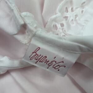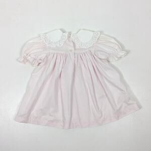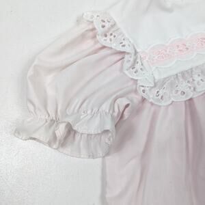 Vintage Bryan & Co light pink dress with a gorgeous white eyelet floral bib collar. Size tag was removed, so please check the measurements provided. Looks to fit like 24m.