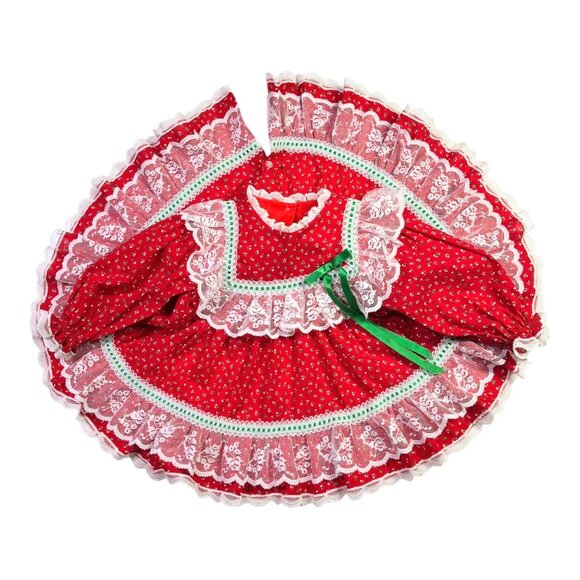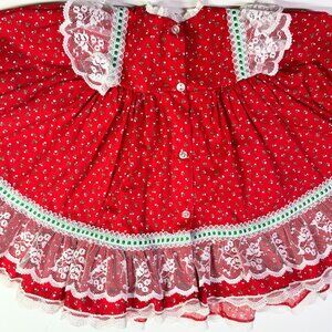 Vintage Bryan Size 12M Frilly Red Dress Lace Green Trim
