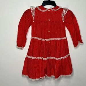 Vintage Bryan red with white polka dots teired dress kids size 5 made in the USA