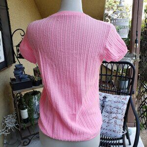 Vintage Bubble Gum Pink Top / Mod / V-Neck / Medium