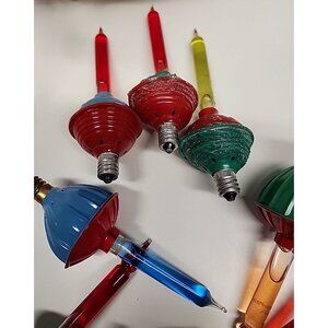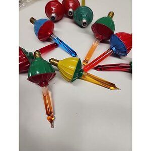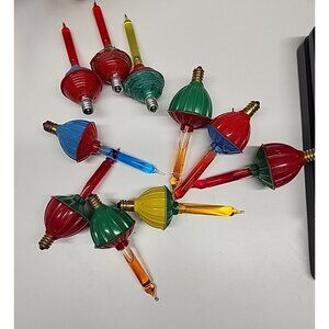 Mid-Century bubble Christmas tree replacement light bulbs lot of 10. Untested. The plastic is chewed up on three of them, see photos. The others appear in great condition. Yellow, blue, green, red and orange.