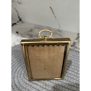 Vintage Bubble/convex Glass Footed Gold Metal Photo Frame MCM Easel