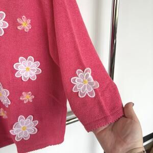 Vintage Bubblegum Baby Pink Daisy Floral Grandma Cardigan Sweater Kawaii Cottagecore