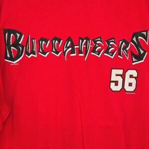 Vintage 90’s Tampa Bay Buccaneers t-shirt. Size 2XL. Red with black and gray lettering. Features number 56 Hardy Nickerson. Graphics on front and back. By Lee Sport.