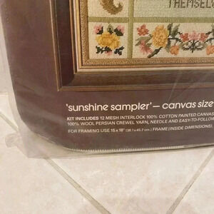 Vintage Bucilla Needlepoint Kit #4167 SUNSHINE SAMPLER 17”x 20" Country Cottage. This item is new in package. Great condition. No flaws.