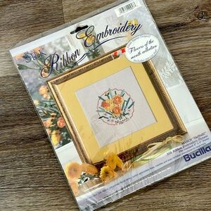 Vintage Bucilla Silk Ribbon Embroidery Kit March Daffodil Flower NOS NIP 90s