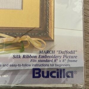 Tags: bucilla, kit, ribbon, silk, emboidery, March, flower, birth month, birthday, Pisces, daffodil, yellow, baby, nursery, baby shower, gift, crewel, cross stitch, embroidery, needlecraft, craft, DIY, cottagecore, cute, pastel, art, sewing, hobby, 90’s, vintage, unused, complete, kit