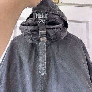 Vintage Buckaroo Parka Jacket Grunge Goth Fish Tail Hoodie Pockets Charcoal Lrg