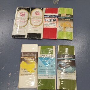 This lot of 18 vintage buckle kits and seam binding pieces originates from the United States and includes original items from the past. The collectibles are perfect for sewing enthusiasts looking to add unique and retro pieces to their collection. These items are not handmade and provide a glimpse into the history of American sewing craftsmanship.
