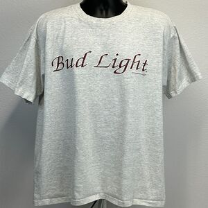 Vintage Bud Light Beer T Shirt Mens X-Large Spellout Script Anheuser Busch Gray