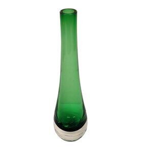 Vintage Bud Vase Emerald Green Art Glass MCM Scandinavian Style Slim Neck