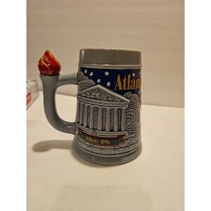 🏅Vintage Budweiser 1996 USA Atlanta Olympic Games Beer Stein Mug Torch Handle