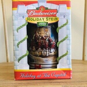 New in box. Budweiser 2001 Holiday Stein, Holiday at The Capitol.