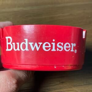 Vintage Budweiser Beer Ashtray Red Plastic 1980s Bar Bud Advertisement American