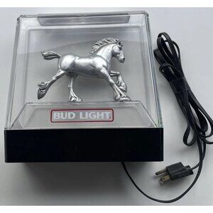 Vintage Budweiser Bud Light Silver Clydesdale Horse Lighted Beer Sign 1980s