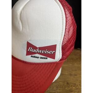 Vintage Budweiser Hat Bud Beer Biere Snapback Trucker Mesh Cap Red White -
