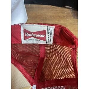 Vintage Budweiser Hat Bud Beer Biere Snapback Trucker Mesh Cap Red White -
