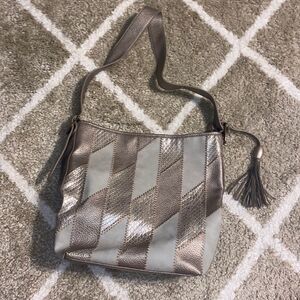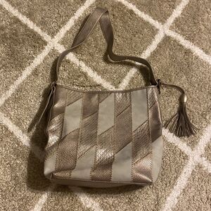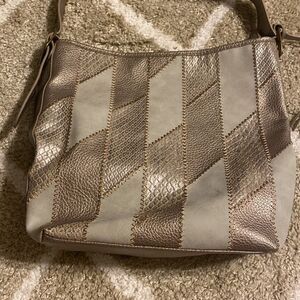 Vintage Bueno Gold Metallic and Suede Patched Shoulder Bag