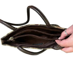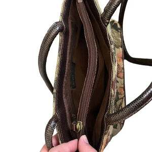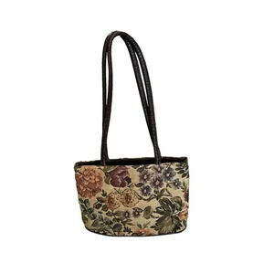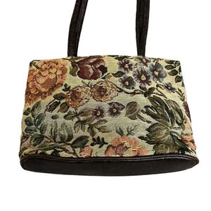 Vintage Bueno Tapestry Cottage Bag Shoulder Handbag Floral Brown Purse Medium