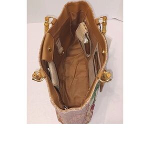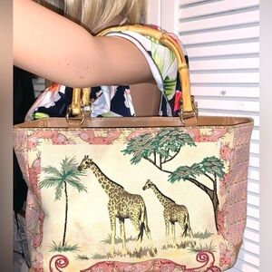 Vintage Bueno Wearable Art Giraffe Safari Beaded Purse Bamboo Handles 10”X14”