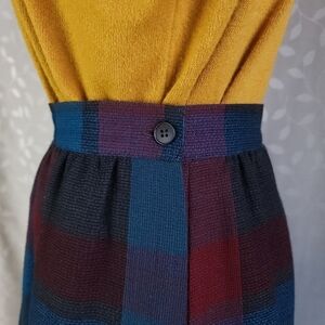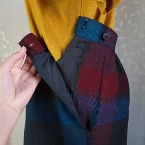 Women's Vintage Wool Midi Skirt by Prophecy in Jewel Buffalo Plaid. Labeled 10 - but Fits Like an XS.