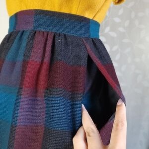 Vintage Buffalo Plaid Dark Academia Wool Midi Skirt Jewel Red Teal Prophecy