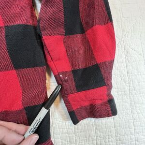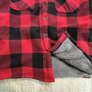 Vintage Buffalo Plaid Mens Medium Sherpa Lined Flannel Button Jacket Rothco Red