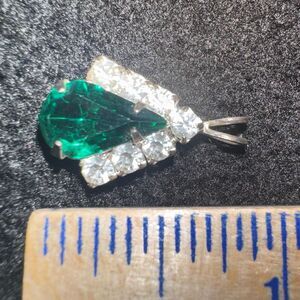 Vintage Emerald Green Stone Teardrop Rhinestone Art Deco Jewelry Pendant Charm