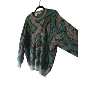 Vintage Bugatchi Sweater Mens M Crew Neck Pullover 90s 80s Print Teal Grey