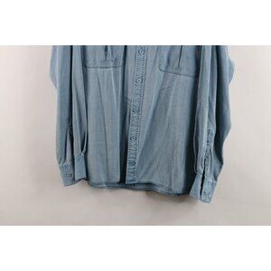 Vintage Bugatchi Uomo Mens Medium Faded Silk Ribbed Collared Button Shirt Blue