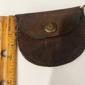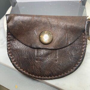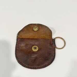 Vintage Bugatti Coin Keyring Change Purse Brown Leather Snap Flap