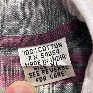 This multicolored shirt has a button-down collar and long sleeves. It features pockets and is suitable for all seasons. The shirt is in size XL and fits regular. The fabric type is woven, and it has a vintage look that adds character to the shirt. The shirt is ideal for men who want to add a touch of vintage style to their wardrobe