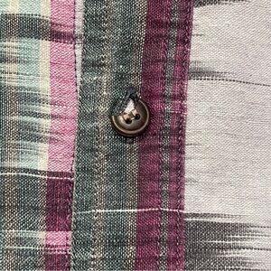 Embrace the nostalgia of the 90s with this vintage Bugle Boy button-up shirt. The colorful Western print featuring Aztec motifs makes it a perfect statement piece for any casual occasion. The shirt is made of 100% cotton, making it comfortable to wear and breathable.