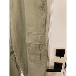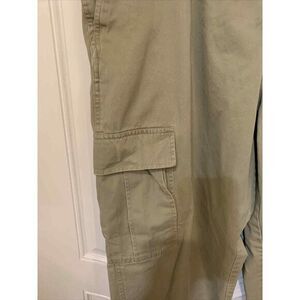 Up for sale are a pair of vintage Bugle Boy cargo pants in beige khaki color. These pants feature solid pattern and a relaxed fit with a high rise waist size of 40 inches and an inseam of 30 inches. The pants have easy care and breathable features, with drawstring and button closures.