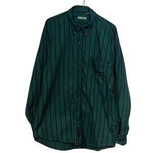 Vintage Bugle Boy Co. Striped Button Down Shirt Men’s L Faded Green Crest Logo